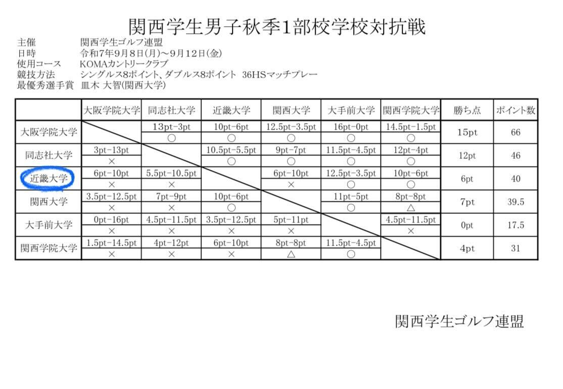 令和7年度関西学生男子秋季1部校学校対抗戦