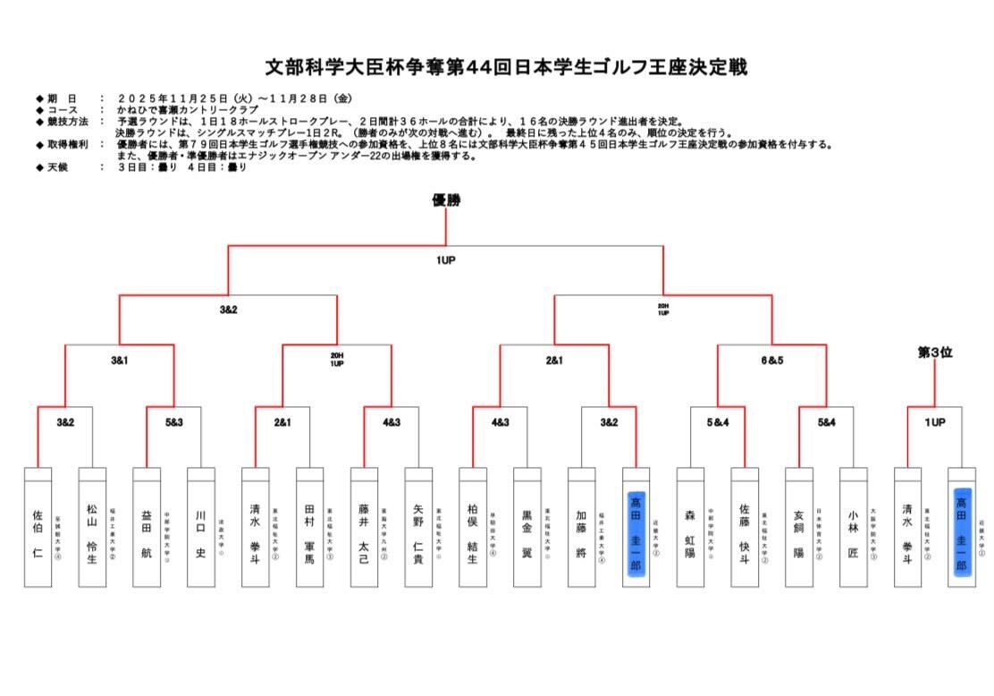 ページの先頭に戻る文部科学大臣杯争奪第44回日本学生ゴルフ王座決定戦・文部科学大臣杯争奪第8回日本女子学生ゴルフ王座決定戦